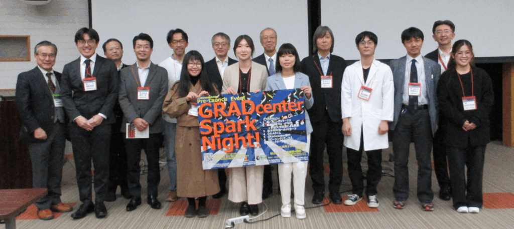 令和7年11月11日(火)、GRADcenter主催による「Spark Night! ― 大学院生支援組織発足集会Pre-Launch Event」が本部棟4階ホールにて開催されました。大学院生と先端研究者が一堂に会し、研究紹介、キャリアセミナー、交流会を通して活発な意見交換が行われました。本イベントにはSPRING事業も共催として参加しました。